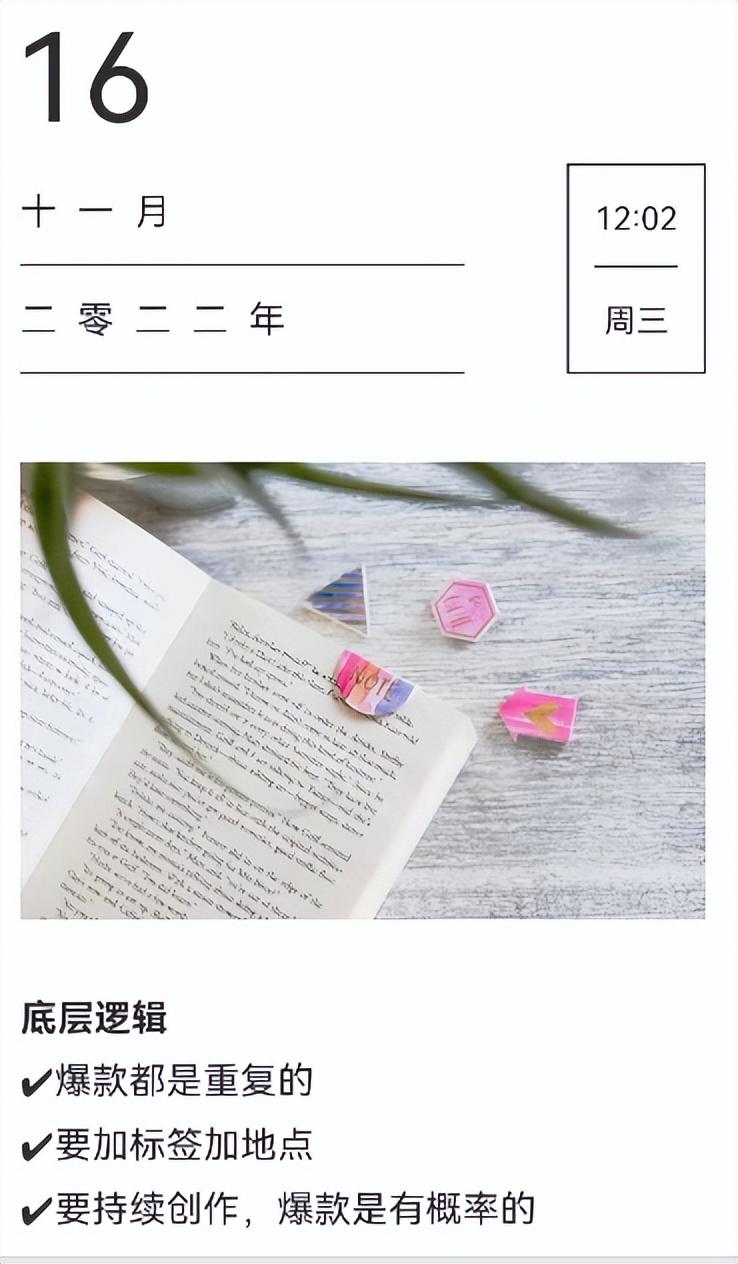 所以,有个词叫“物尽其用”嘛,平时发个金句卡片,做个封面,活动海报,小红书内页,最大化的把消费变成投资。