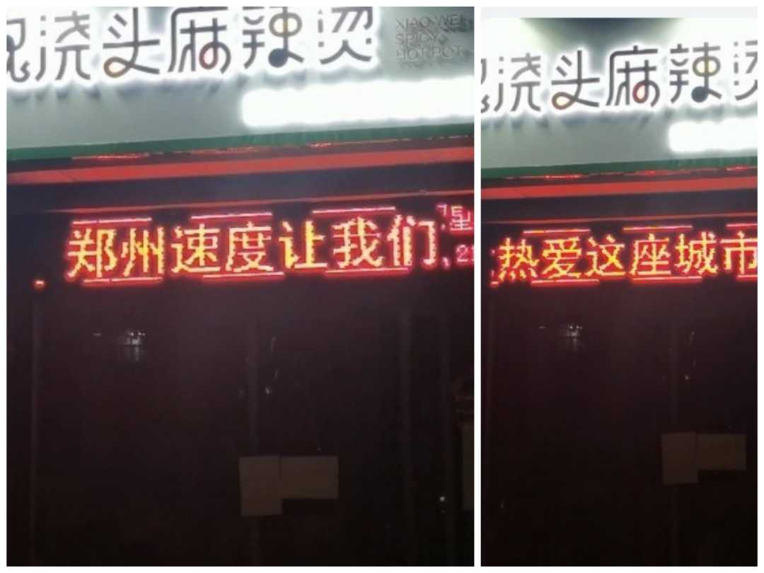河南郑州,白庙路上,一家新开业不久的麻辣烫店电子屏上,每天更新内容,记录着本轮疫情发生后店主的心路历程,也通过特别的方式,表白郑州。店主鹿先生未满30岁,开这家店,是他第一次创业,投资近50万元。“因为有疫情,很多人都劝我别冒险,可我对郑州抗疫的能力心里有底。”没想到,新店刚开业8天,就遇到了“禁止堂食”的冲击波,他有感而发:郑州疫情防控效率果然没让我们失望,郑州速度让我更加热爱这座城市!