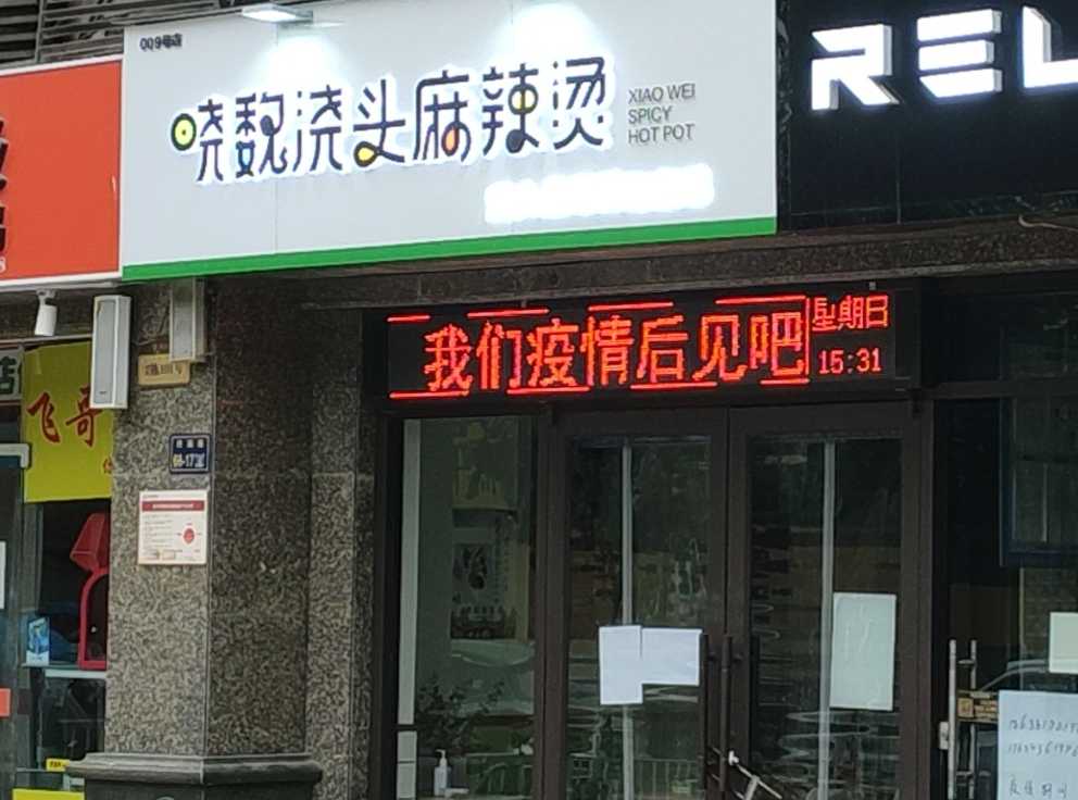“恢复堂食的第一天,来闹一口带浇头的麻辣烫吃吧!”一家麻辣烫门口的电子屏上,大红字幕滚动着,字里行间透着几分喜悦。