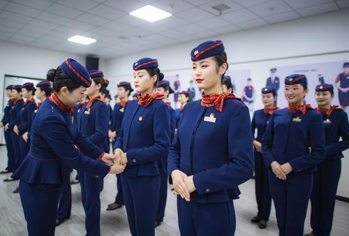 中国铁路武汉局集团有限公司武汉客运段组织一批年轻动车组乘务人员开展服务礼仪培训、应急技能模拟演练等活动。新华社供图