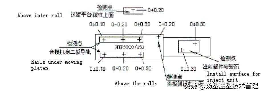 检测工具:直尺、精度水平尺(0.1/1000mm) 调整结果一般以调模进退最小压力为标准