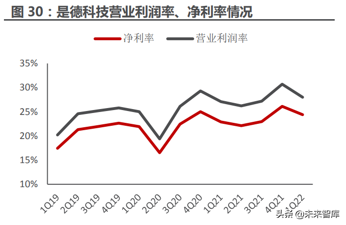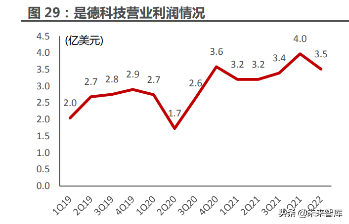 疫情导致营业利润下降,公司快速走出低谷。从分季度营业利润看,是德科 技营业利润、营业利润率没有明显的周期性,整体呈波动增长趋势。2Q20,受新 冠疫情扩散与相关限制影响,是德科技产品产量减少、下游用户的需求降低,导 致收入环比下降 18%至 9.0 亿美元,因此营业利润下降 37%至 1.73 亿美元,营 业利润率环比下降 5.6pct 至 19%。由于疫情被逐渐控制,供应链恢复、下游需求 回升,是德科技 3Q20 的产品和服务收入分别环比增加 15%、5.9%,实现营业利 润为 2.6 亿美元、营业利润率为 26%,基本恢复至 1Q20 水平。随着 M8199A、 定制化解决方案等产品陆续推出,是德科技营业利润及营业利润率维持较高水平。(报告来源:未来智库)