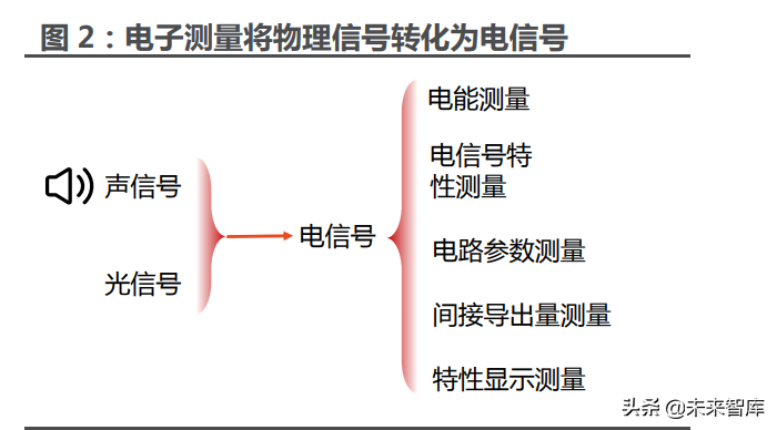 电子测量是信息技术的源头,肩负自主创新历史使命。 信息技术通常由测量 技术、计算机技术、通讯技术三部分组成,其中测量技术在科技革命中承担最基 础的作用。电子测量一定程度上可谓是信息化的源头。从产业链维度看,一个产 业从原材料的选定、生产过程监测、产品性能测试与行业运营都离不开电子测量 的辅助,因此我们认为电子测量肩负着各行业产业升级、自主创新的历史使命。