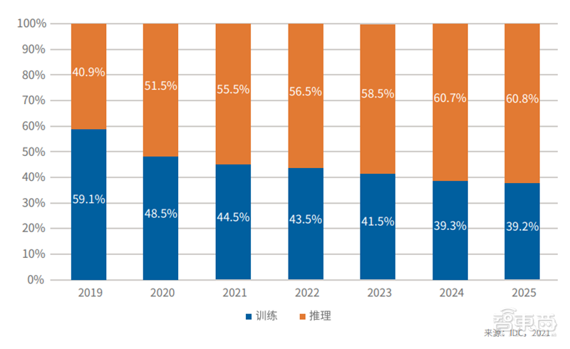 人工智能服务器推理和训练工作负载预测,2019-2025