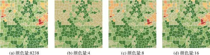 图 4 地图瓦片在不同颜色数量下的效果Fig. 4 Map tiles quantified by different color number