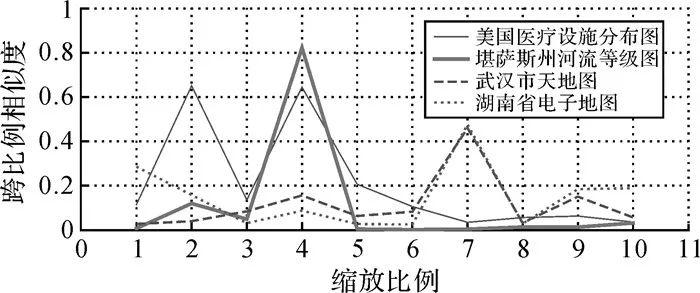 图 8 地图服务跨比例尺相似度曲线Fig. 8 Trans-scale similarity curve of web map services