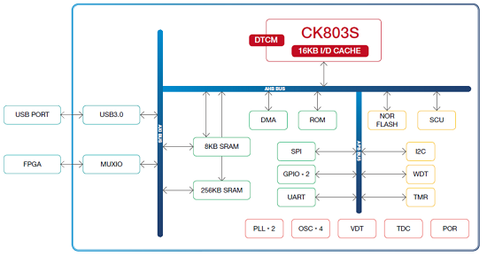 CK803S内置16KB I/D Cache,内置32KB DTCM