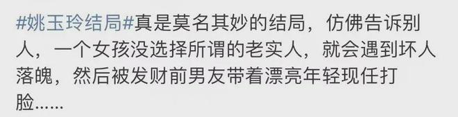 一时间,意难平的观众们讨伐声遍布全网,为姚玉玲打抱不平。