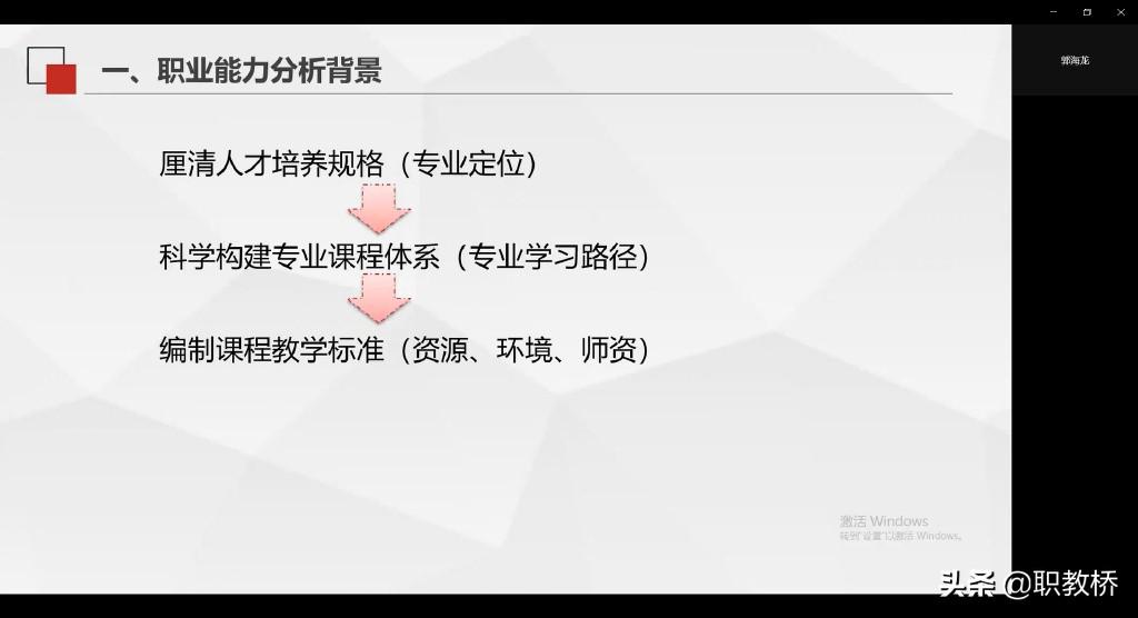 会上,主持人进行职业能力分析辅导,详细讲解职业能力分析背景与目的、职业能力分析方法、会议组织流程和职责分工等,由行业专家分解职业岗位群对应的工作项目、工作任务和职业能力,并分析职业素养要求。