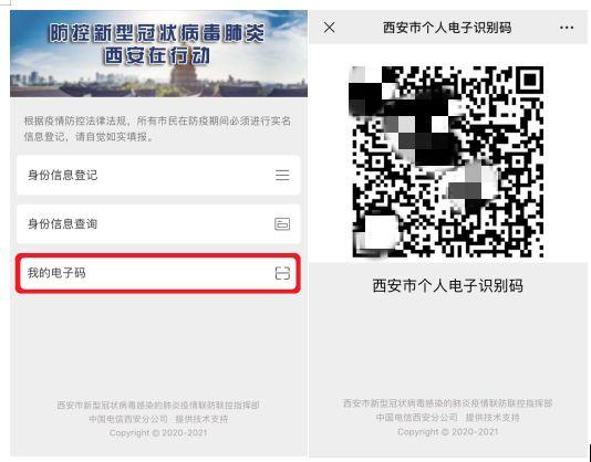 用户可点击“我的电子码”获取 “西安市个人电子识别码”。