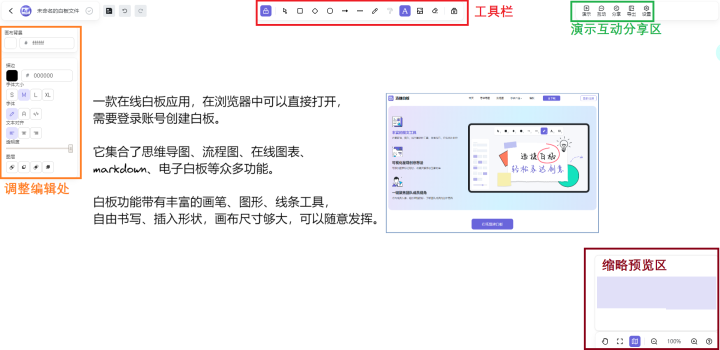 一款在线白板应用,在浏览器中可以直接打开,需要登录账号创建白板。它集合了思维导图、流程图、在线图表、markdown、电子白板等众多功能。