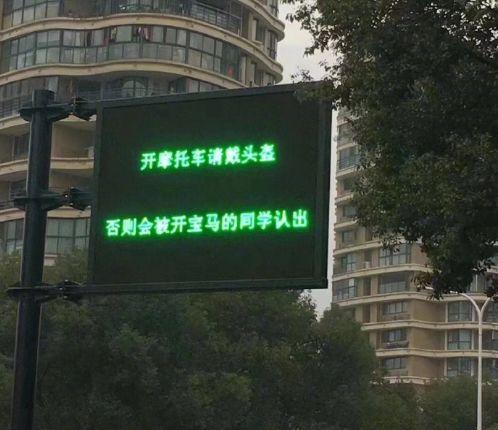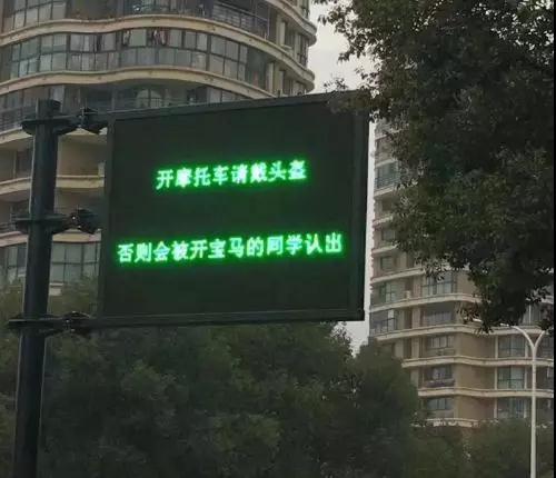 “开摩托车请戴头盔,否则会被开宝马的同学认出”