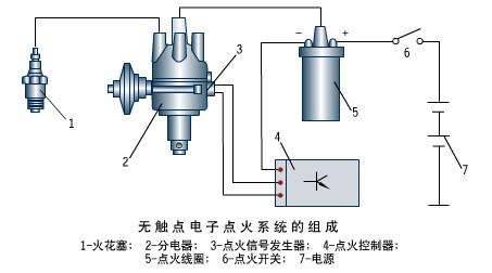 普通电子点火系统,用大功率晶体管代替,原来的断点器触电,起开关作用。点火控制器,根据信号发送器输入的信号控制大功率晶体管的导通和截止,接通或断开,次级点火线圈,从而在次级点火线圈感应出高压。