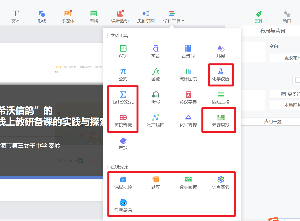 -在课件的备课页面-学科工具中找到功能入口