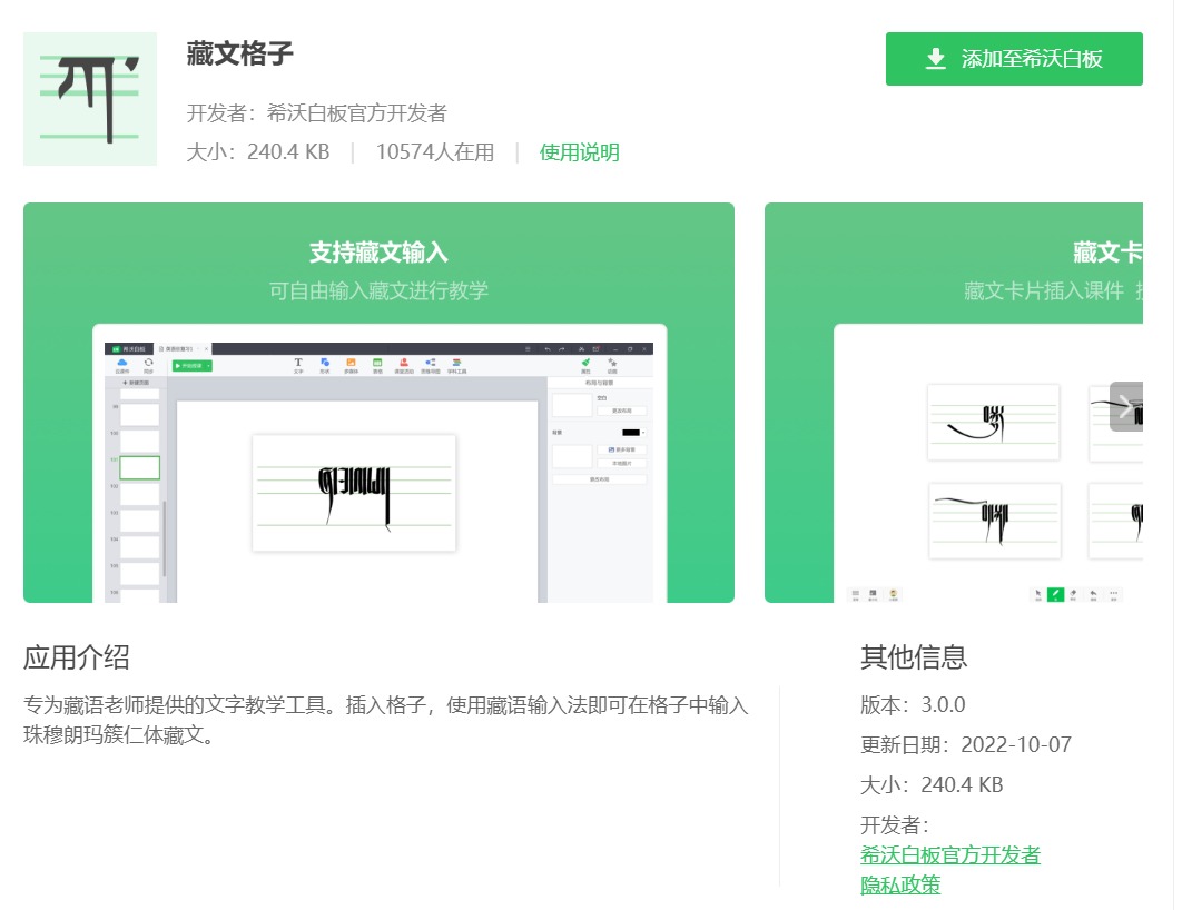 专为藏语老师提供的文字教学工具。插入格子,使用藏语输入法即可在格子中输入珠穆朗玛簇仁体藏文。