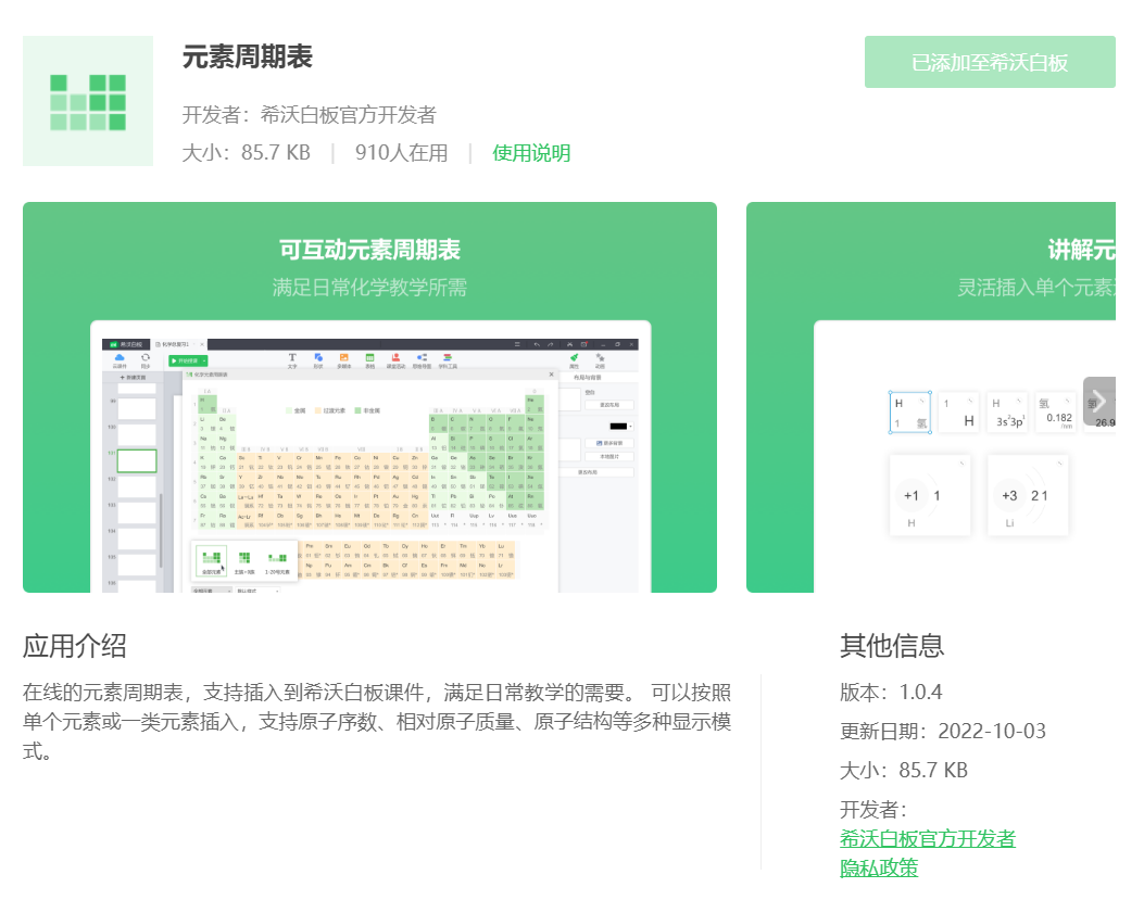 在线的元素周期表,支持插入到希沃白板课件,满足日常教学的需要。 可以按照单个元素或一类元素插入,支持原子序数、相对原子质量、原子结构等多种显示模式。