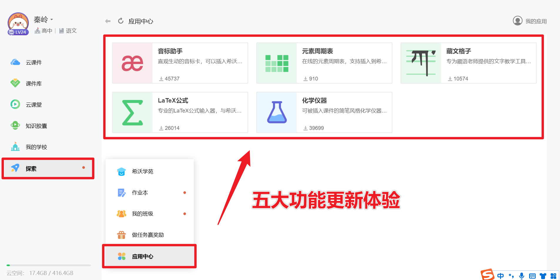 国庆假期即将结束,明天我们迎接7天连班,下午备课的时候突然发现“希沃白板5”(EN5)的应用中心提示有更新,原来在这个假期“希沃白板5”的团队还在更新和优化应用中心等功能,太卷了!