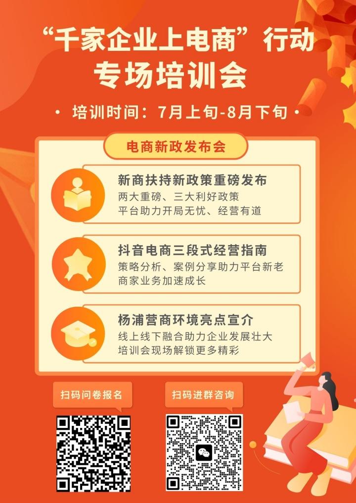 培训会将发布重磅新商扶持政策、讲解电商平台经营指南、推出杨浦营商环境亮点宣介等内容,通过“面对面”互动、“手把手”辅导,有力支持传统企业通过电商平台扩展销售渠道、培育品牌资源、壮大交易规模。
