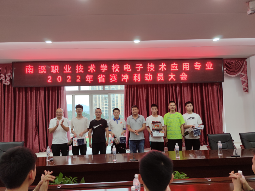 6月16日下午,宜宾市南溪职业技术学校电子技术应用专业2022年省赛冲刺动员会在学校行政楼408会议室召开。学校电子技术应用专业部部长米运波作动员报告,副部长张平主持会议,参赛选手、指导教师、部分班主任出席会议。