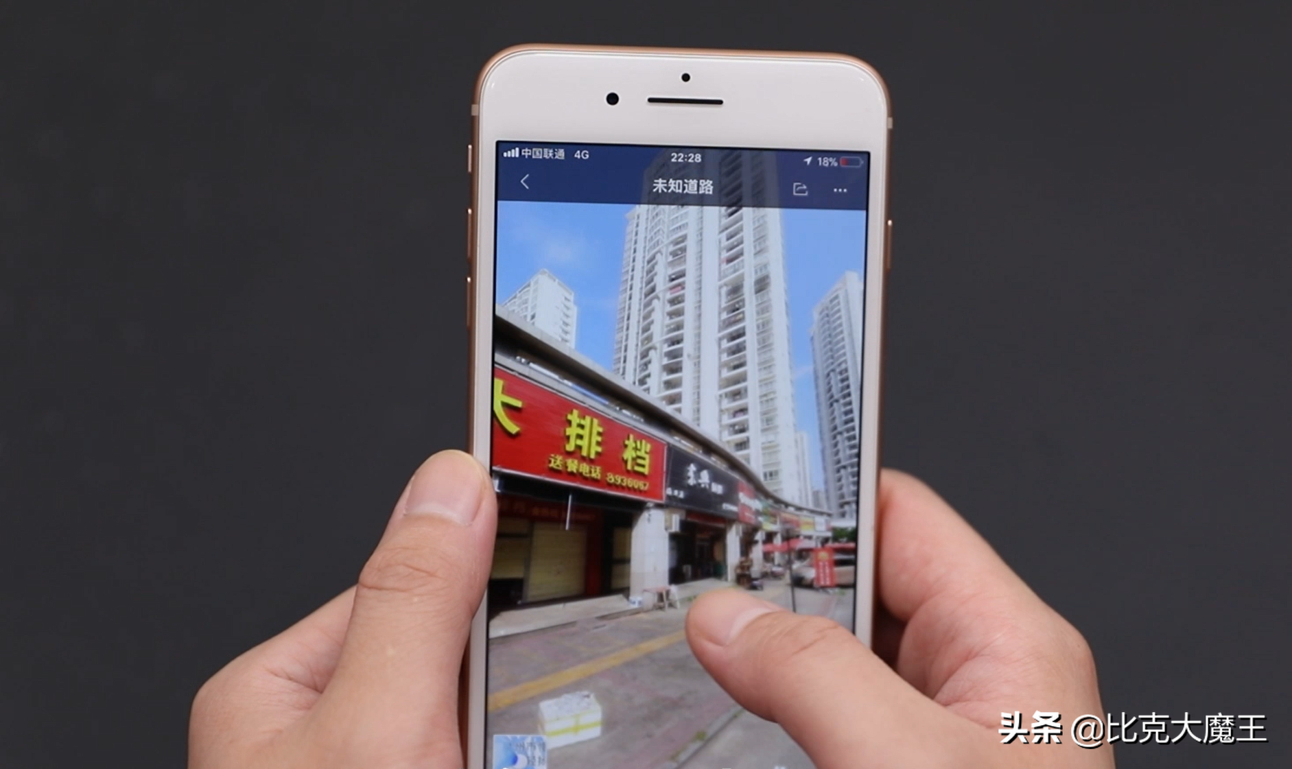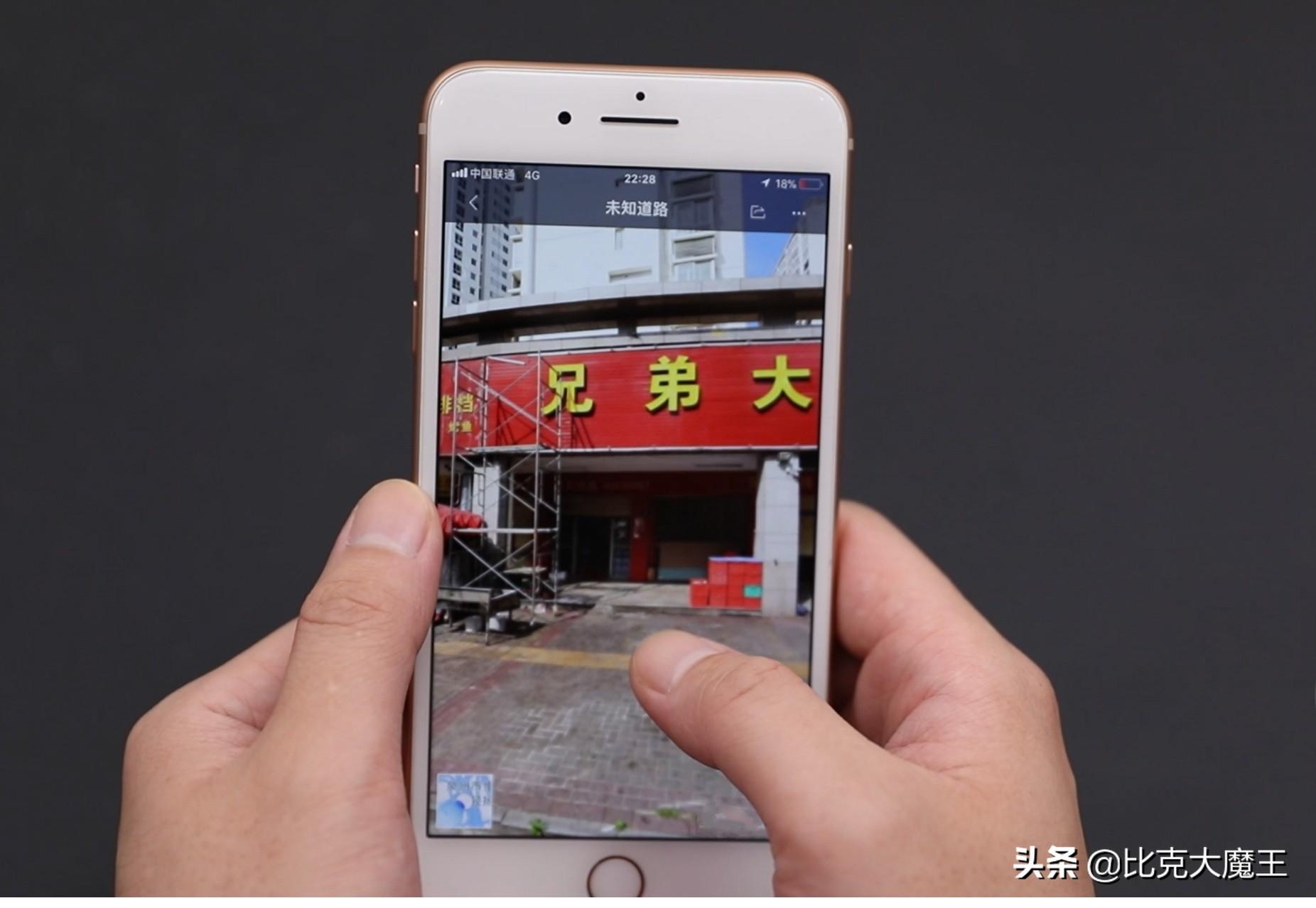 看到这样的地图就仿佛我们来到了现场一样,我们可以拨动一下手机,店铺上面的招牌都可以看得一清二楚。还有请大家看一下