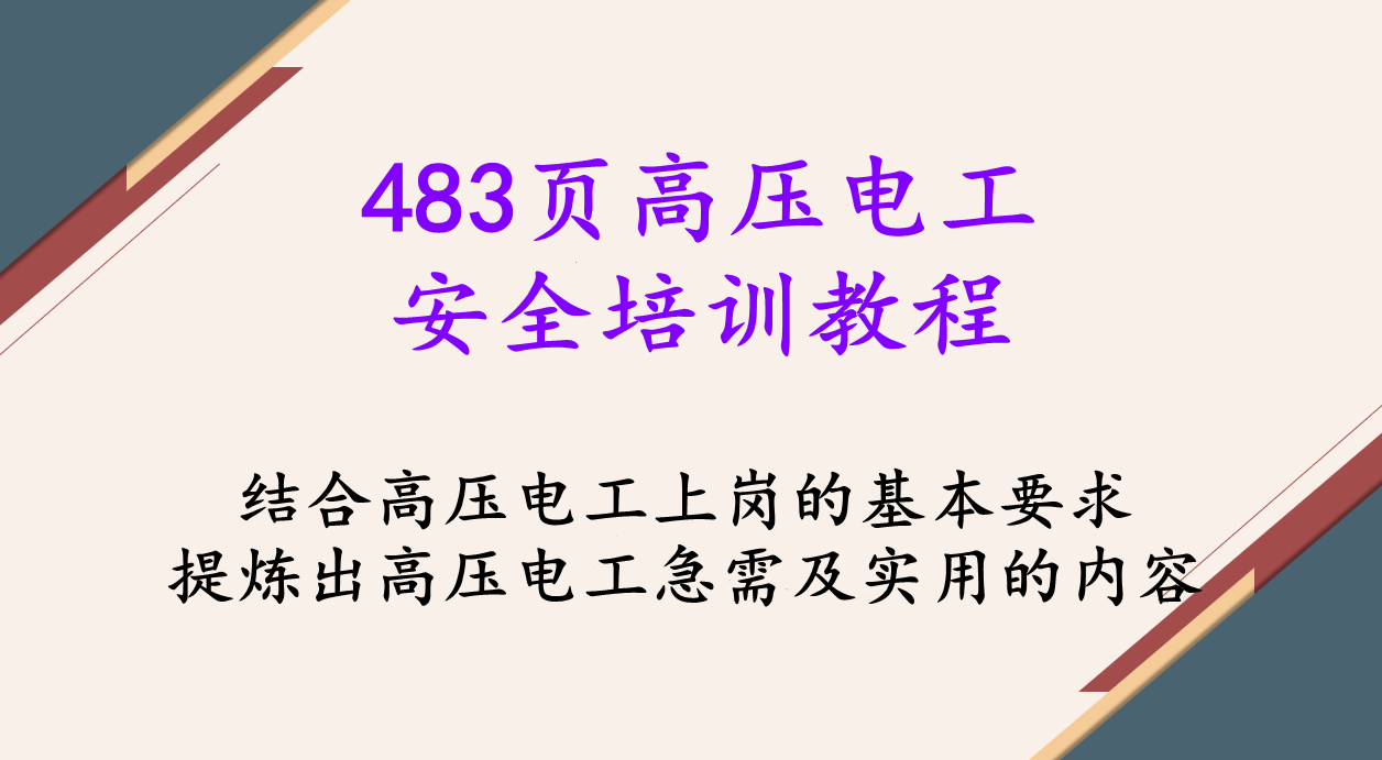 今天整理了483页高压电工安全培训教程,结合高压电工上岗的基本要求,提炼出高压电工最急需、最实用的内容,浅显易懂,针对性强,电工新手也能快速掌握上岗技能 。