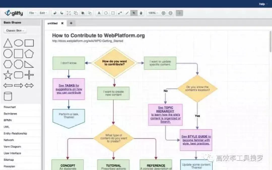 Gliffy 是一个在线流程图插件。它还能本地浏览。同时还能离线运行,就像一个安装在本地的软件一样。