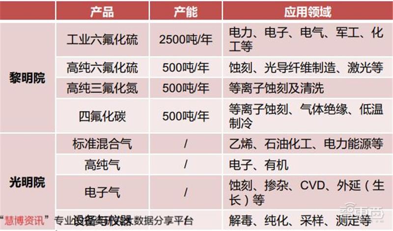 在电子特气领域,公司是国内具备高纯度三氟化氮研制能力的先驱;国内最早从事六氟化硫研发的企业,亦是国内仅有的高纯度六氟化硫研制企业;国内仅有的硒化氢研制企业。2020年黎明院实现极大规模集成电路行业用高纯度四氟化碳和六氟化硫电子气体的国产化;研制的新型环保绝缘气体全氟异丁腈成功应用于目前世界上首个采用新型环保气体、电压等级最高、通过全套型式试验考核的特高压环保型GIL产品,全氟异丁腈的成功研制,确立了我国在新型环保气体研究领域的重要地位。