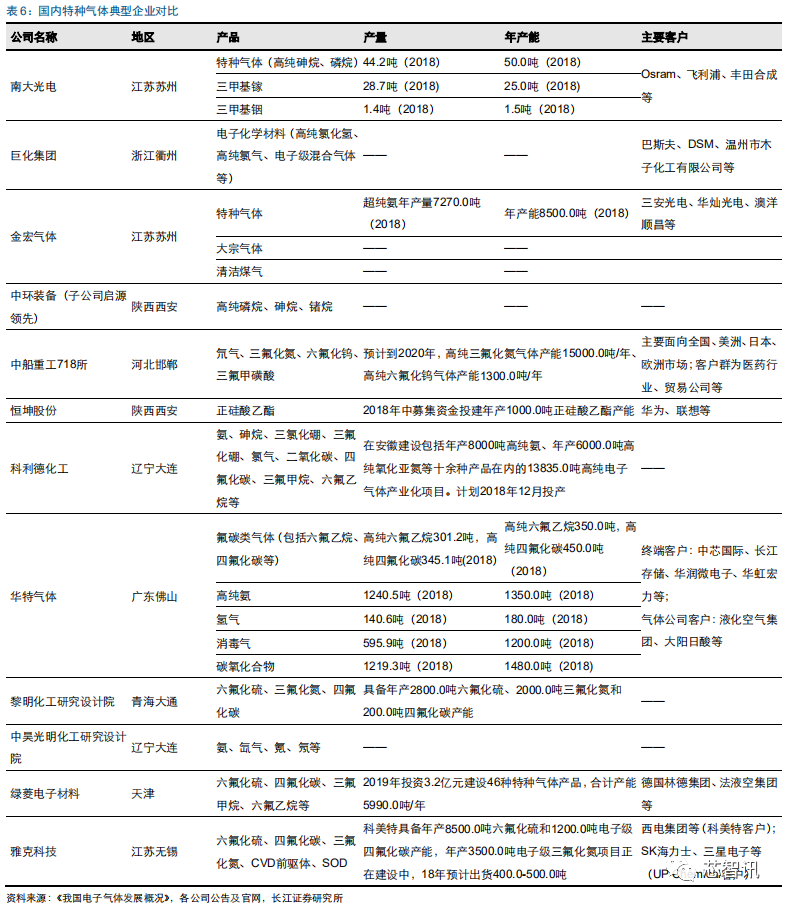 国内主要电子气体公司产品