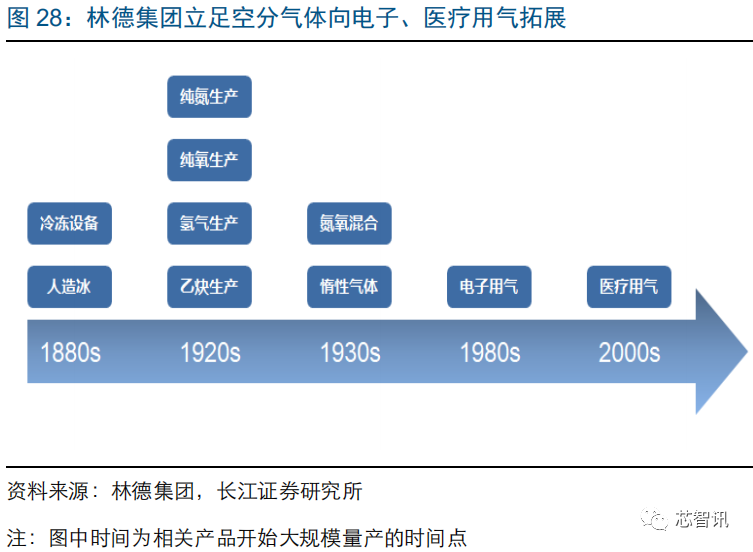 回顾林德等工业气体龙头可以发现,其早期以空分气体及设备为立足点,逐步打入电子用气、医疗用气等领域,其优势在于利用大型空分装置切入下游客户,借助平台优势顺势发展成为气体综合解决方案提供商。