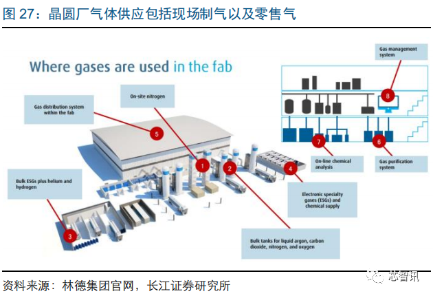 林德模式:从空分气体设备供应商向气体综合解决方案提供商蜕变。从林德集团的半导体工厂配气装置可以发现,气体服务是一项系统工程,包括超纯大宗气体、现场气体发生器、气瓶和批量供应的电子特种气体,另外还涉及到大宗气体储存和分配系统、气柜和配气管等系统和专业服务等。