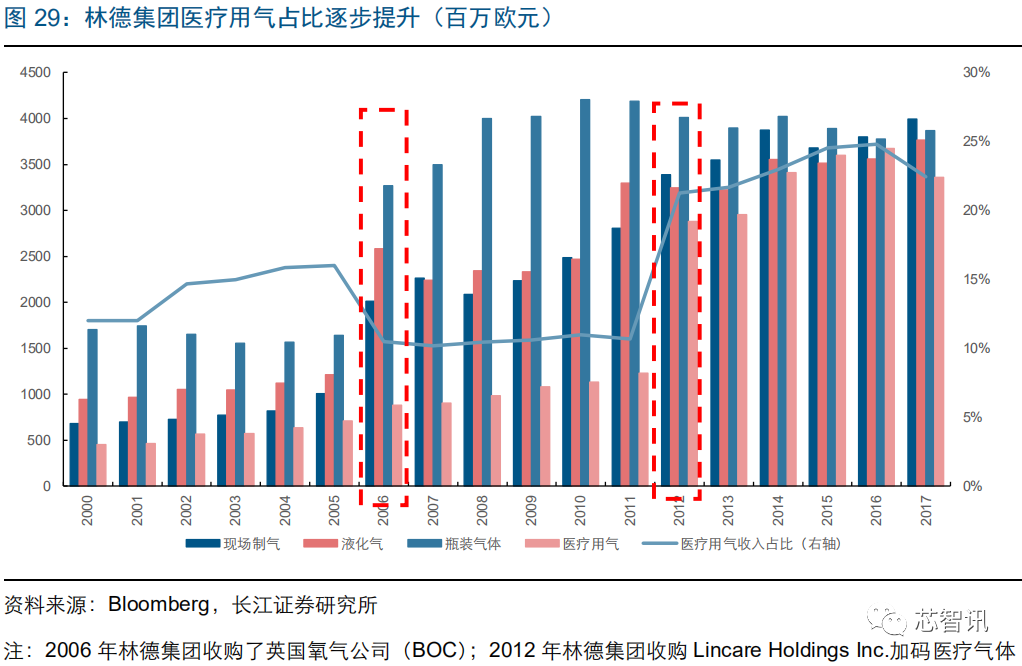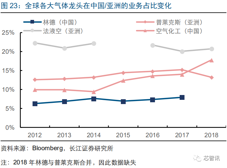 对应地,林德的气体业务营收占比已由 2015 年的 75.0%提升至 2018 年的 85.4%。