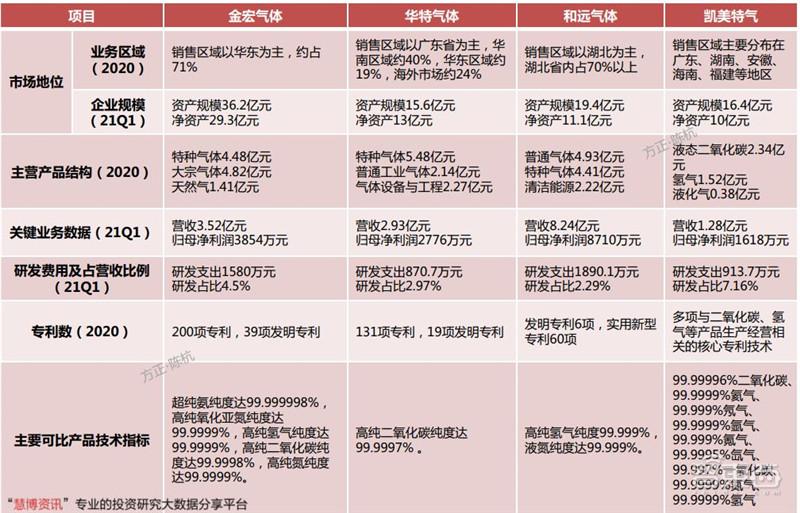 八大国内电子气体供应商对比