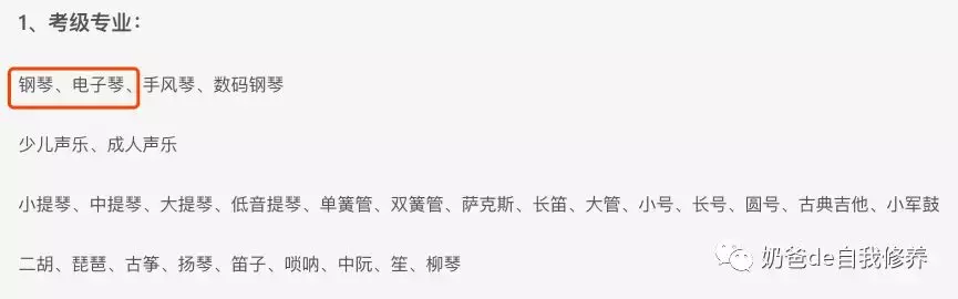 下图是中央音乐学院的乐器考级目录,来自中央音乐学院网站,可见开头就是钢琴和电子琴:
