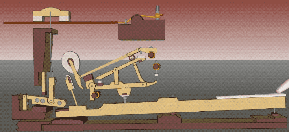 如果你仔细看上面的动图,就会发现琴键被按下很短时间后,那个白色的、水滴形状的小锤所在的部分就会脱离整个传动结构,撞向琴弦。手指对琴键后续的按压不再会对最后产生的声音有任何作用。所以,按琴键时的初始力度至关重要!前人发明了各种触键方法,归根结底是为了让我们人类的手能够在钢琴琴键的机械结构上,尽可能精确地控制力度。