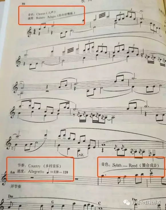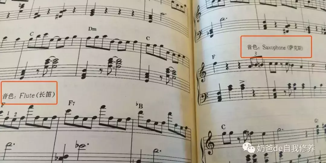 下面几张图来自中央音乐学院电子琴考级教材。我随机拍了几首曲子,可见其使用了不同的音色,且是不同的音乐风格。