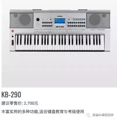 市场上有不少几百元的电子琴,那确实是玩具,确实是廉价替代品。但稍微贵一点的电子琴,比如下面这款雅马哈KB290,是专门为中国的电子琴考级开发的,价格2700,属于非玩具电子琴中最低端的。注意到黑白琴键上方还有几十个按钮了吗?高端的电子琴按钮会更多。玩具不会这么复杂的。