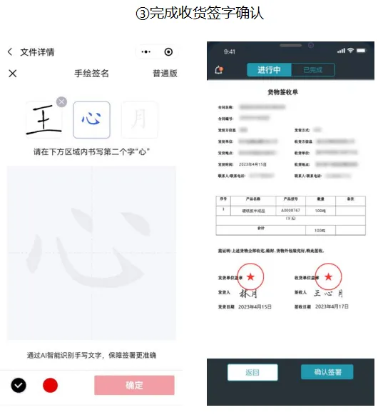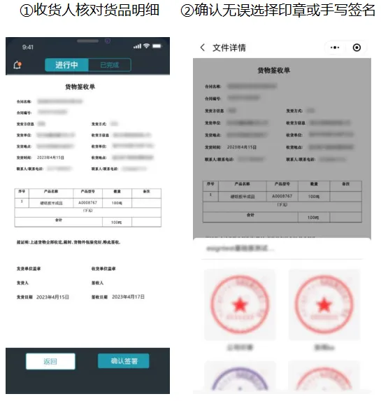 通过使用e签宝电子签章服务,打通库管系统,实时录入清点情况,并在线实名确认、签字、盖章,保障货品管理有序安全。