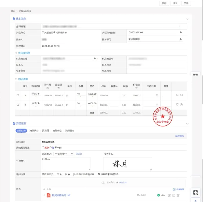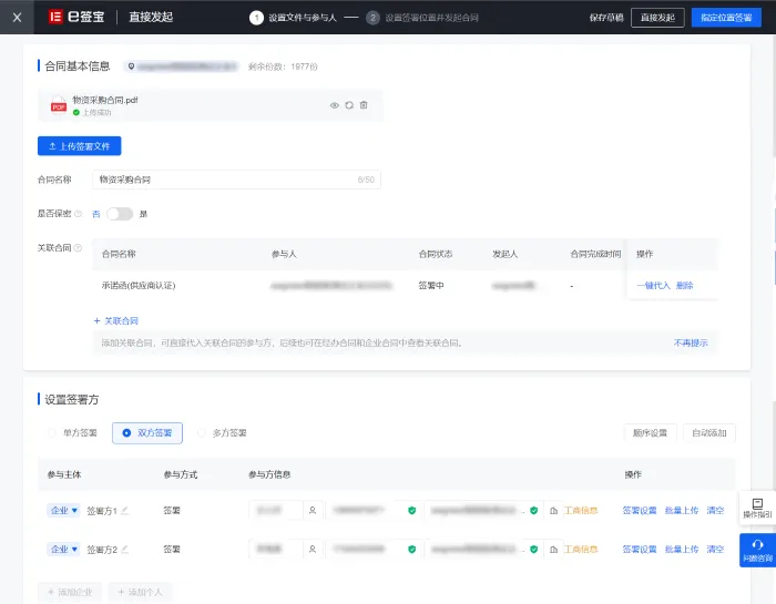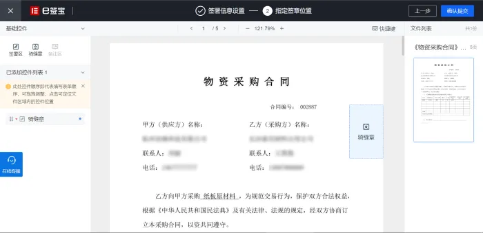 在此过程中,e签宝提供合规安全的合同、协议、证明等文件签署服务,保障金融服务全流程可控、可追溯,保障供采双方权益。