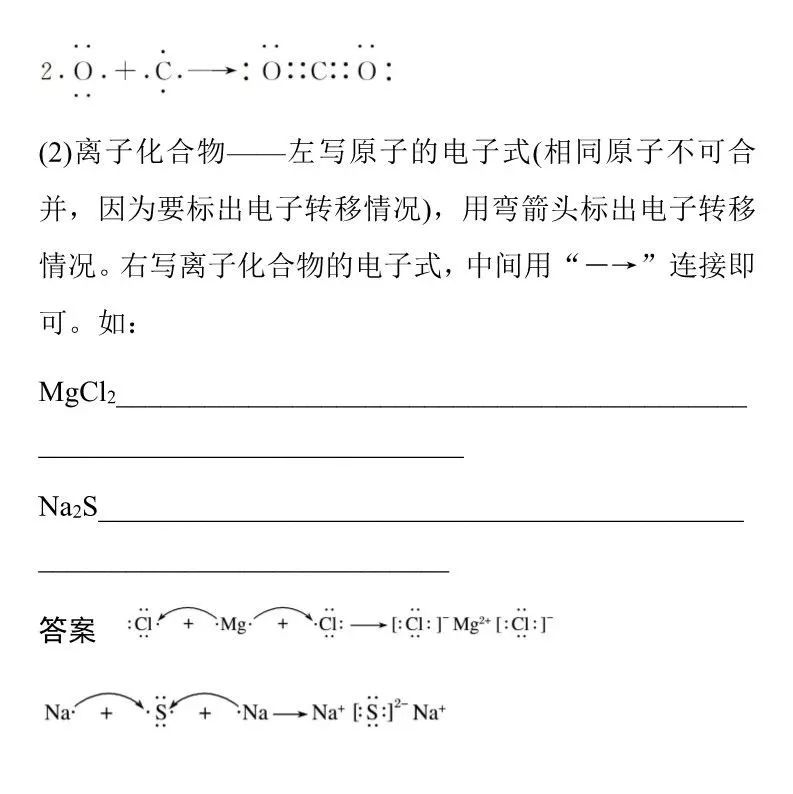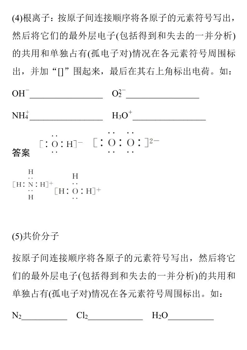 3. 电子式只能用示表示由主族元素形成的物质,不能表示由过渡元素形成的物质。