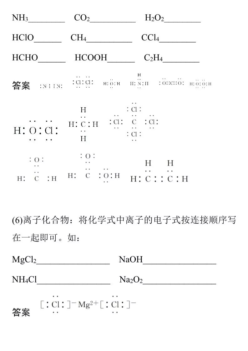 化学高中常见 电子式书写 ,所有的,因为要背,所以不希望有错的_...[最佳回答]差不多常考的都有了