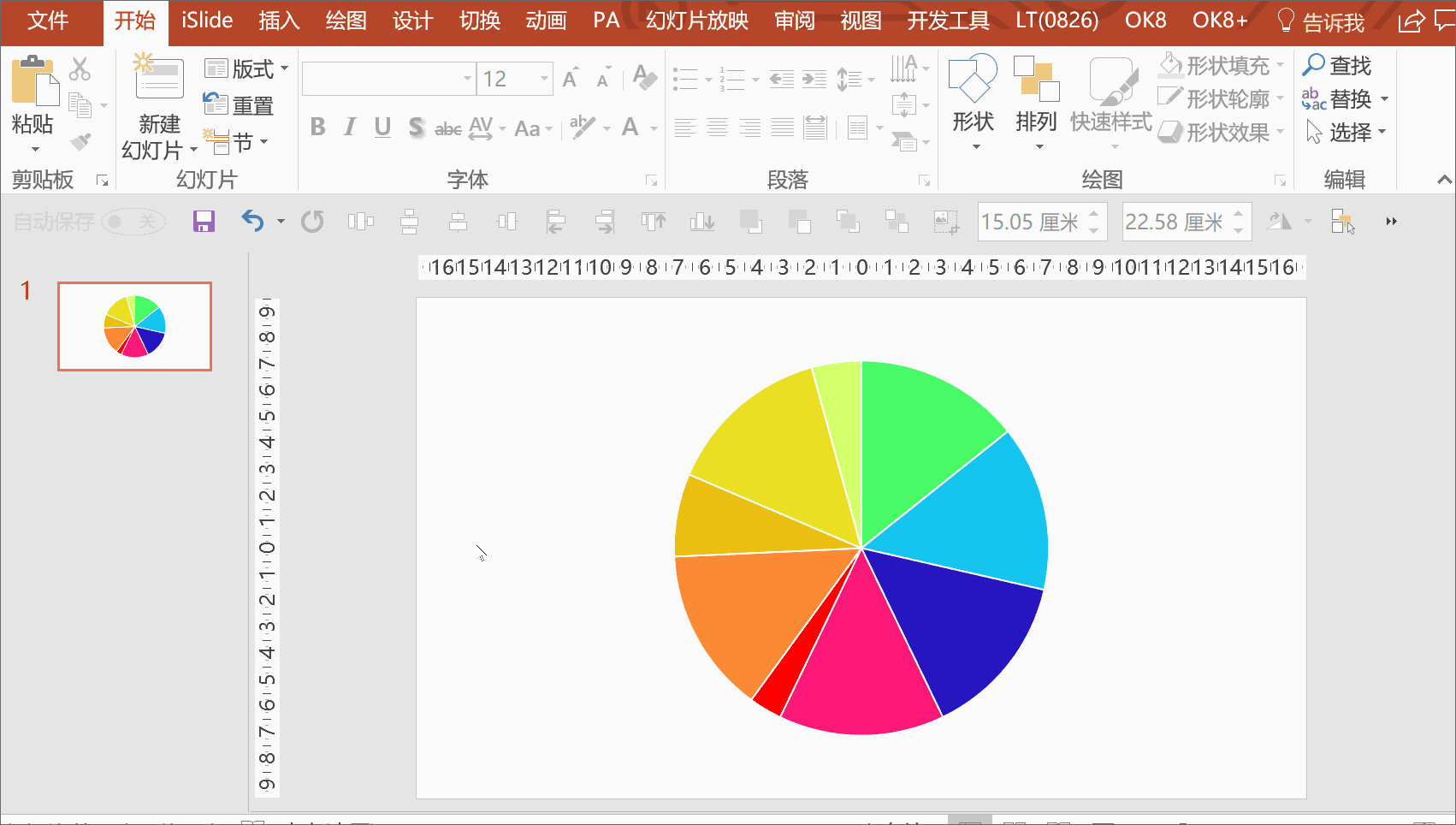 之所以出现这样的情况,是因为我们在将饼图转化为形状时,个别扇面的选框并未紧贴形状边缘(原因未知),将它们组合起来之后,组合的中心就偏移了:
