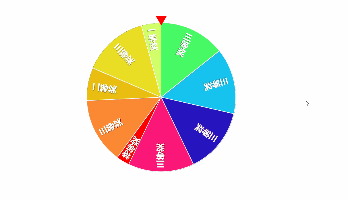 ❼ 最后,在轮盘顶部绘制一个倒三角形,填充红色,作为抽奖指针: