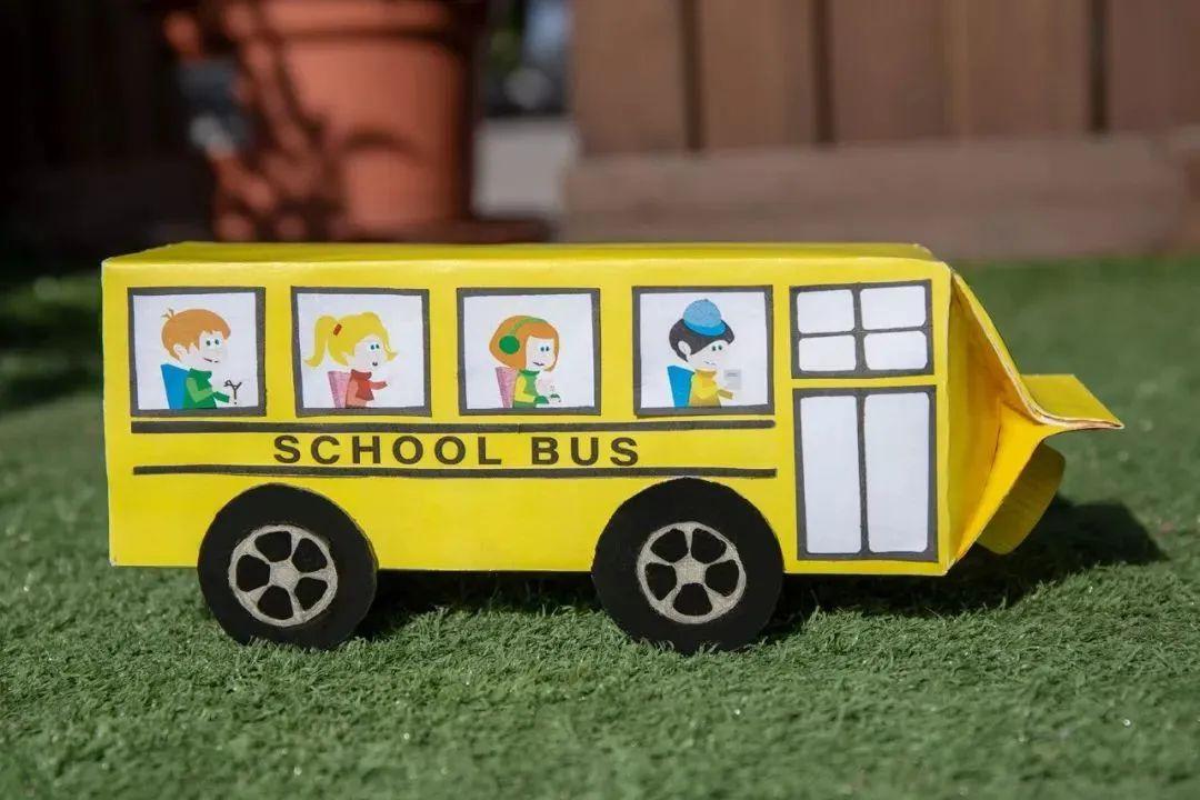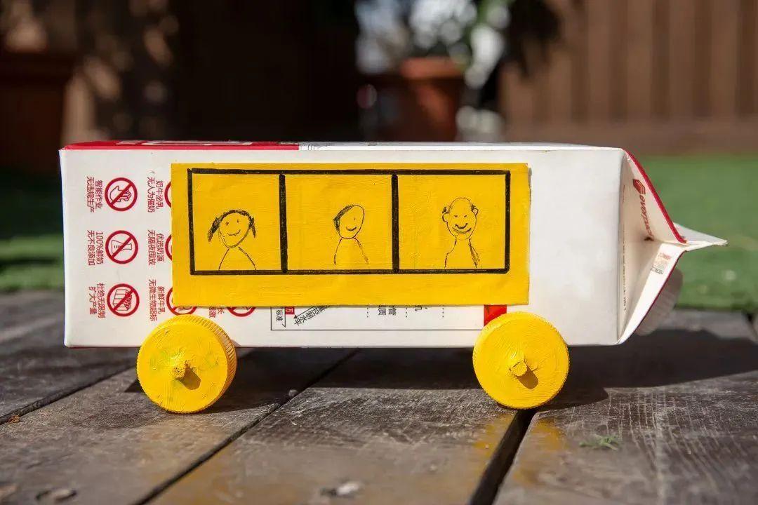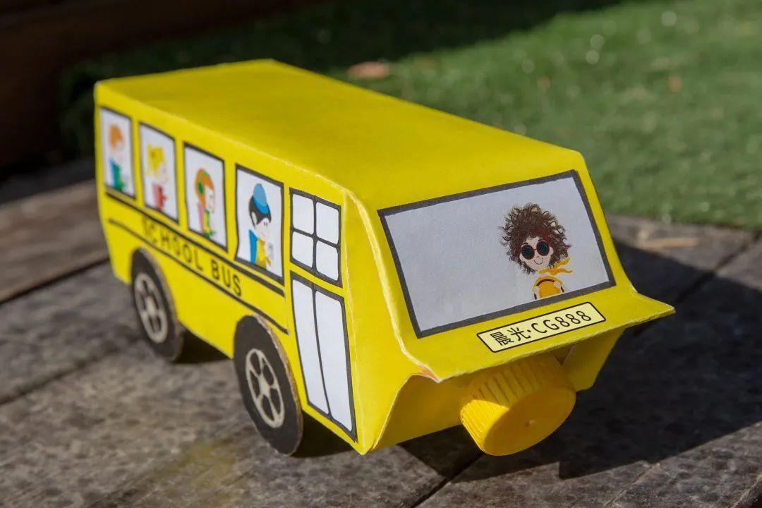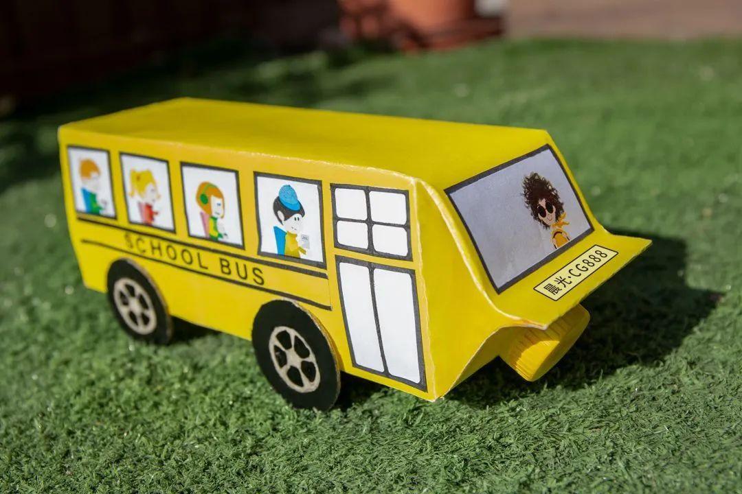 4、车身用尺子和水性笔画两条直线,并写上字,你和孩子共同制作的专属小校车就完成了!
