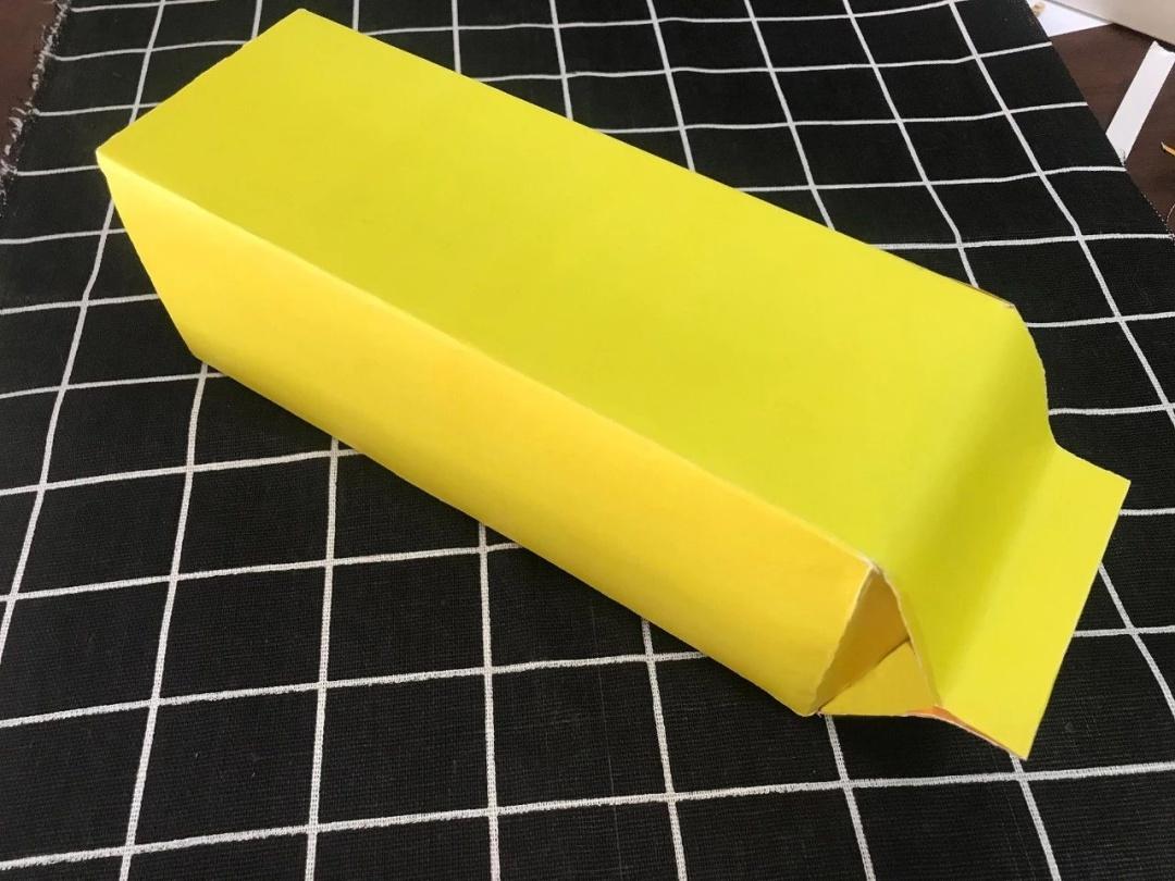 1、牛奶盒清洗干净并晾干后,涂上黄色的颜料或者贴上黄色的纸;