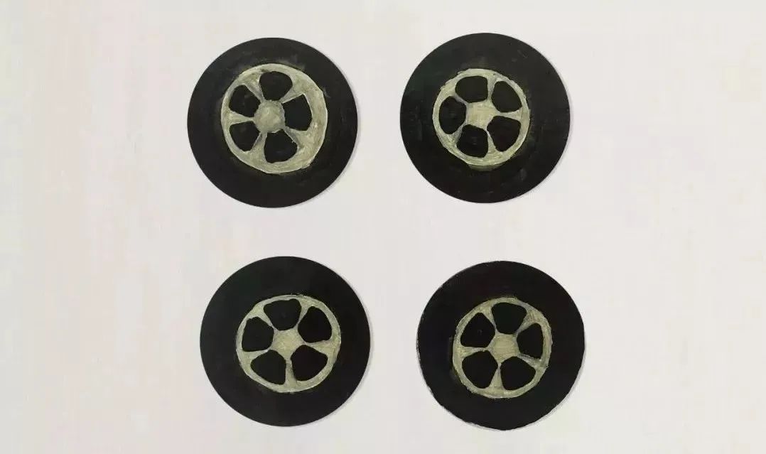 3、用硬纸板剪四个大小相同的车轱辘,并涂上颜色,画出车轮的图案,贴到牛奶盒上;