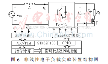 摘 要: 交流电源进行稳态性能测试时,通常采用电阻及整流桥等搭建非线性负载,但存在参数调节不便、自动化程度低等缺点。设计了一种负载参数可以灵活调节的非线性电子负载。通过分析国标GB/T7260.3-2003规定的基准非线性负载的电压和电流关系,提出了一种生成非线性负载目标电流的数值算法。采用数字滞环电流控制技术,使电子负载对被测试电源呈现出设定的非线性阻抗特性,并通过脉宽调制方法实现了等效输出功率的调节。搭建了基于STM32F103控制器的1.5 kVA实验样机,实验结果验证了方案的可行性与正确性。