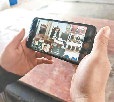 当事人谢灵敏借助“人民法院在线服务”小程序出庭。 图为本报记者戴林峰摄