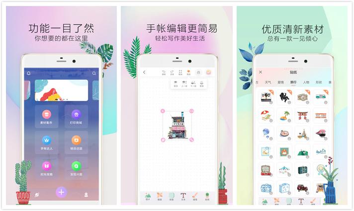 这款APP很小清新,界面设置很合理,功能一目了然,重要的是它编辑起来很简单,即使是手帐新手也能快速制作出合自己心意的手帐。另外,它还提供了很多清新可爱的素材供你选择,反正有了它们不怕会做不出好看的手帐,另外它还支持将弄好的手帐打印出来。