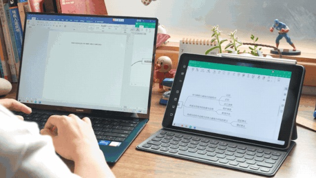 我们还可以选择使用扩展模式,将平板作为电脑的副屏,鼠标可以将电脑端的页面跨屏拖入平板,边查看导图边码字,避免思维过度发散。
