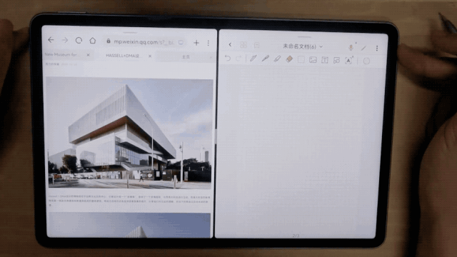 华为MatePad 11上拥有丰富的绘图、笔记软件,使用分屏的功能,左边浏览器,右边做案例笔记,将合适的图片保存到本地,然后在笔记里打开图片,用钢笔简单勾一个建筑小图或者文字批注一下,无缝衔接,保存优质的案例。
